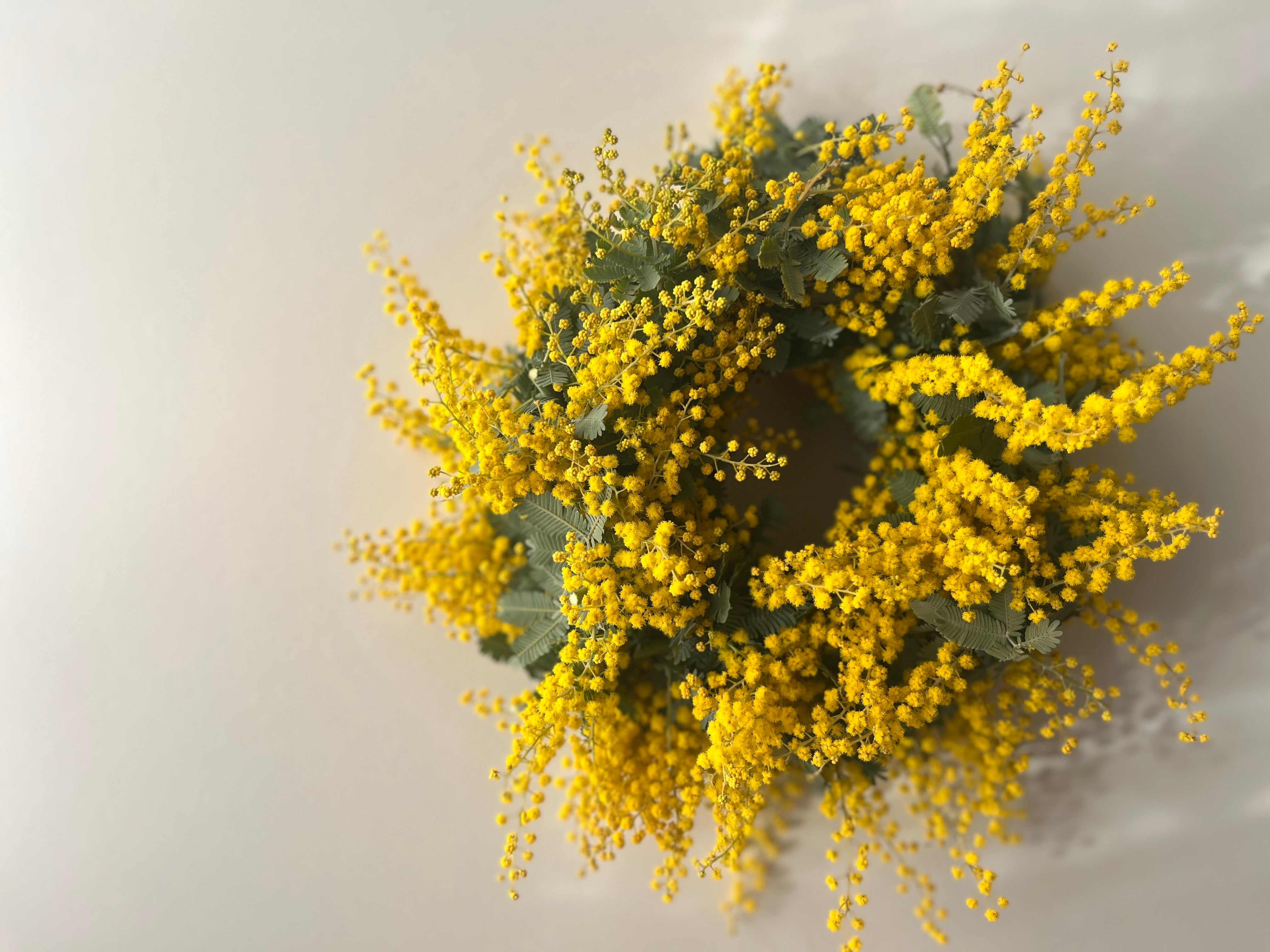 受注制作aakichiさんの気まぐれリース 花ミモザ