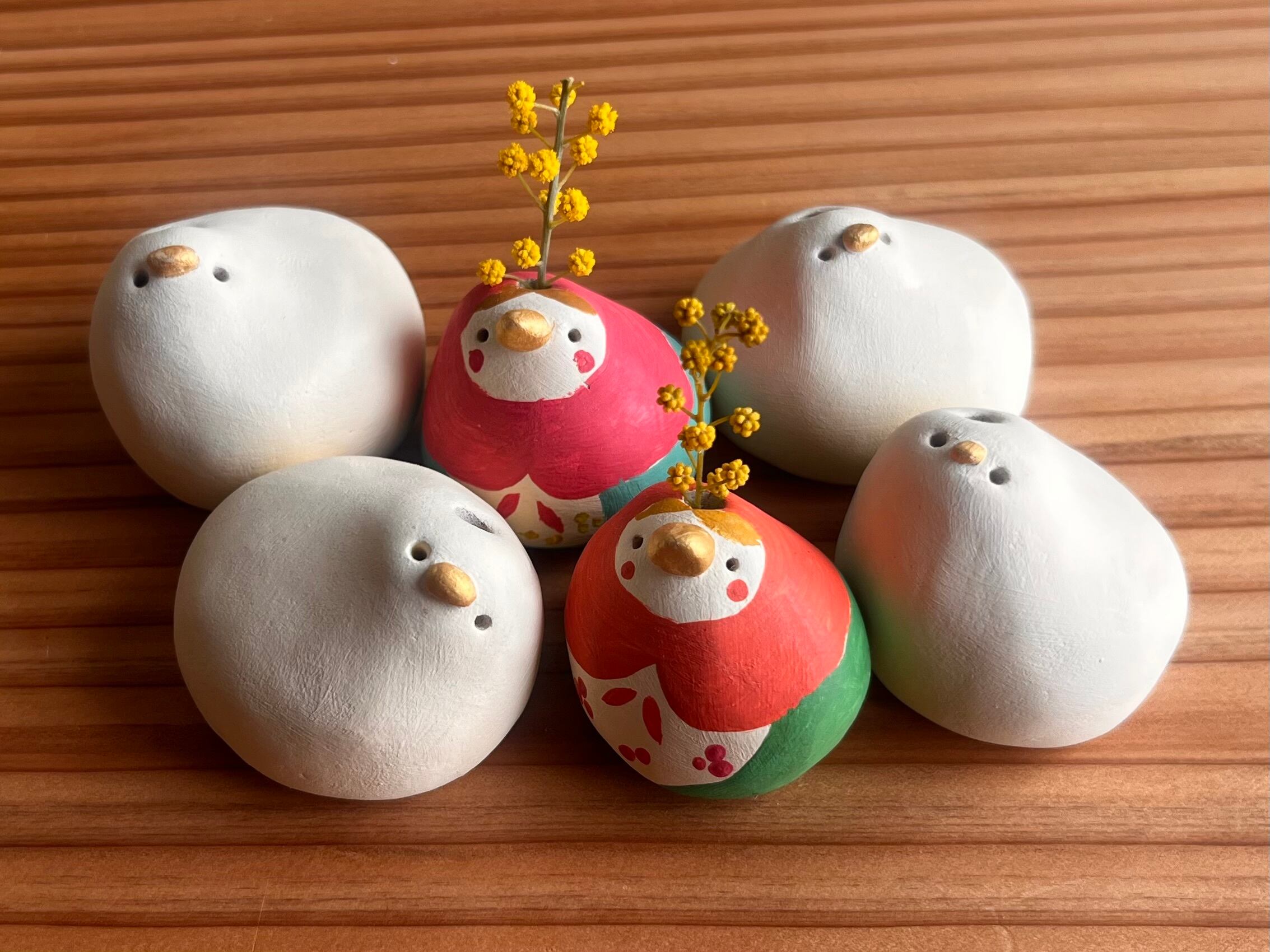 ころんと丸い、白いchunをマトリョーシカ柄にしました!