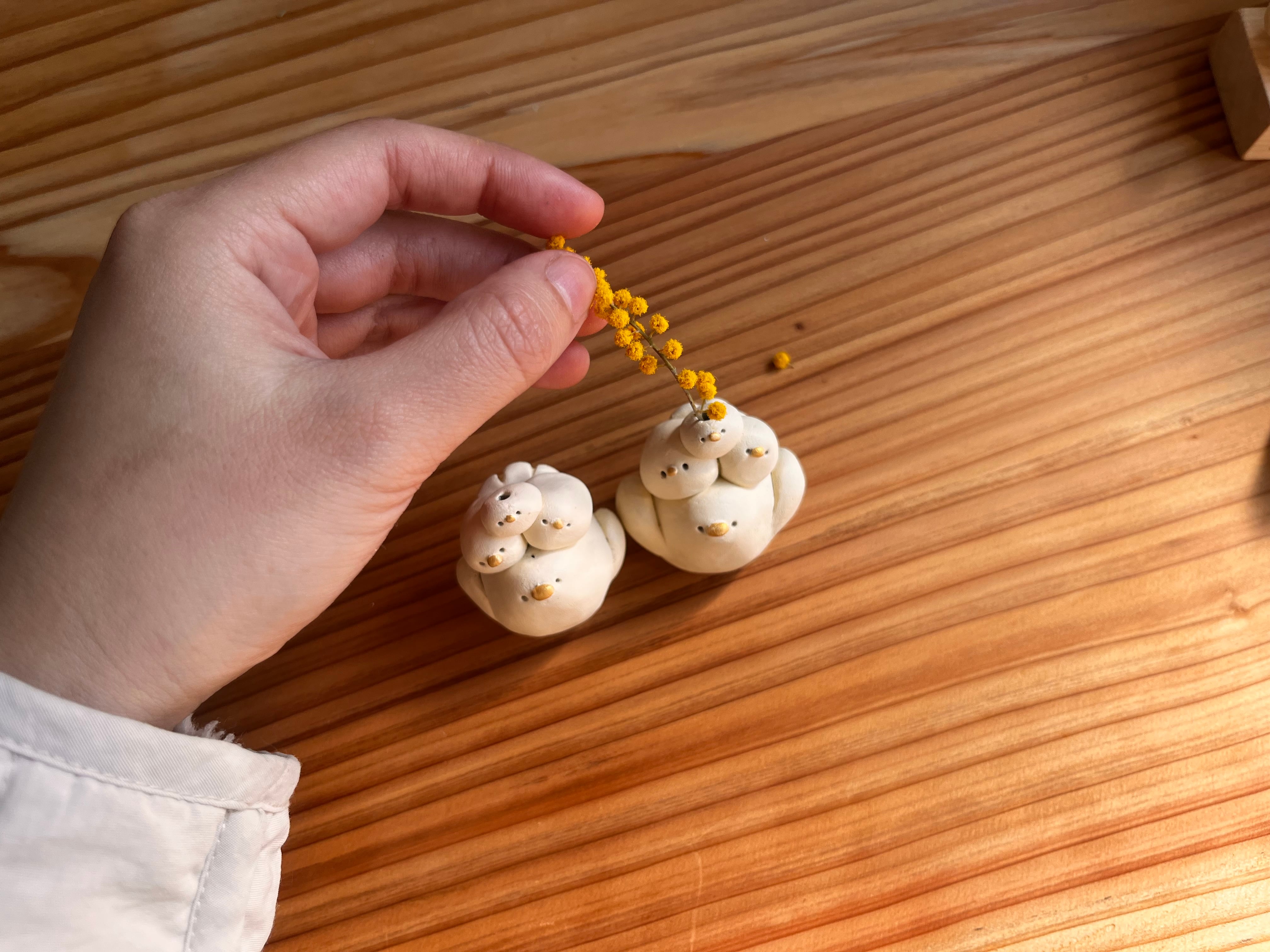 頭の上にドライフラワーや落ち葉をちょこんと飾るのもおすすめです。